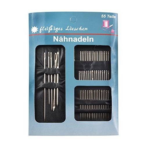 Hier sehen wir ein großes Tedi-Nähnadel-Set mit 55 Nadeln in mehreren Stärken und Längen, passend für Handarbeiten von Reparaturen bis Stickereien.