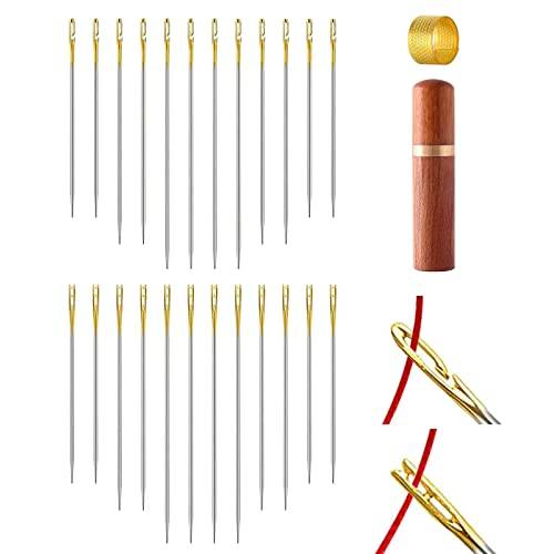 Entweder findet sich eine Hilfe durch eine Einkerbung oben am Öhr, in die Sie den Faden hineinlegen können und dann durch das Öhr ziehen, oder es gibt eine kleine Öffnung an der Seite des Öhrs, wo sich der Faden problemlos hineinlegen lässt. Diese Funktion ist nicht nur für Anfänger interessant, sondern auch für ältere Generationen, die möglicherweise Probleme mit den Augen haben. Selbsteinfädelnd ist auch auf Reisen, wenn es im Zug ruckelt, eine gute Idee, um den eigenen Geduldsfaden nicht zu weit zu spannen.