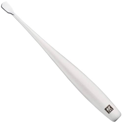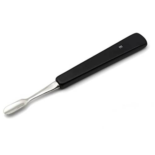 Die sogenannten Löffel-Schieber unterscheiden sich in ihrer Größe und Wölbung. Die meisten Instrumente haben einen relativ großen Löffel, der abgerundet und ausgehöhlt ist. Das soll die natürliche Form des Nagels widerspiegeln, sodass Sie den Nagelschieber möglichst einfach über den Nagel führen und die Nagelhaut dabei zurückschieben können.
