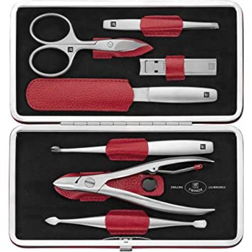 Im Vergleich zu umfangreichen Maniküre-Sets, brauchen kleine Sets mit Nagelscheren nicht so viele Einzelteile aufweisen. Pflichtelemente sind eine Nagelschere und eine Hautschere. Bonus-Lieferumfang können beispielsweise Nagelknipser und Nagelfeile sein. Manche Nagelscheren-Sets, z. B. von Zwilling oder Chali, enthalten zudem einen Hautschieber.