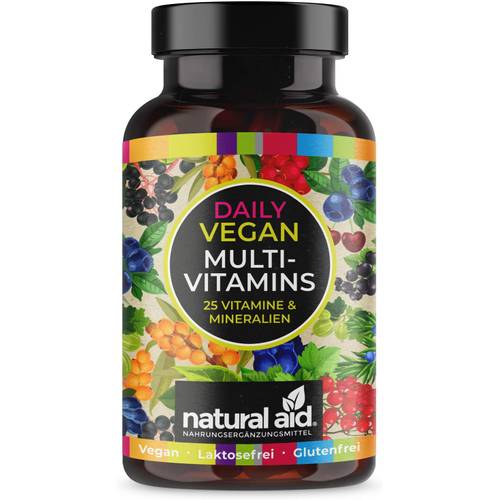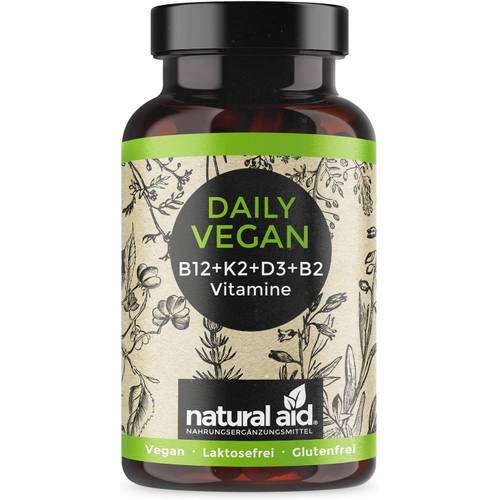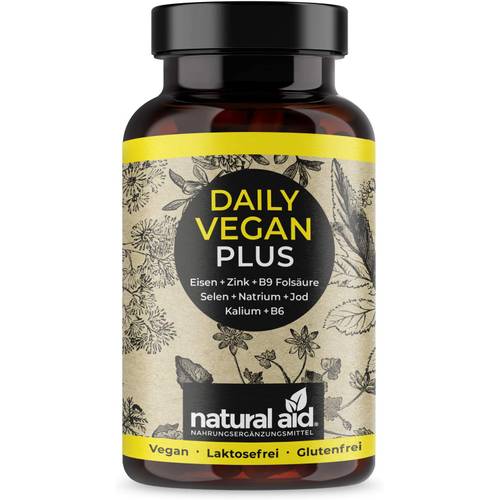 Platz 4 | natural aid Daily Vegan Plus | ca. 24 € | 120 Tage | enthält kein Vitamin B12 | ![]() ![]() | |