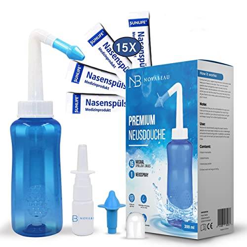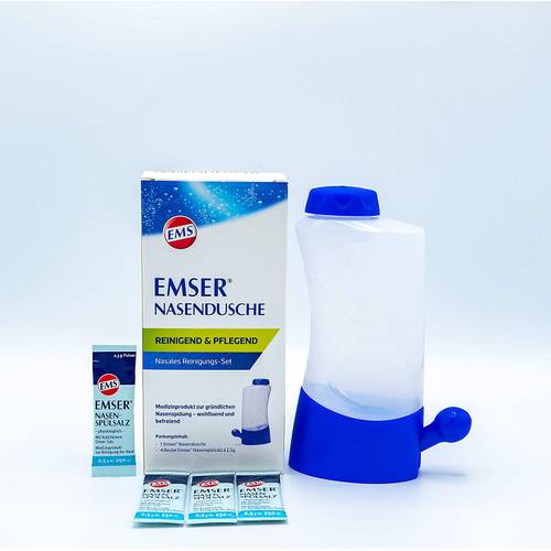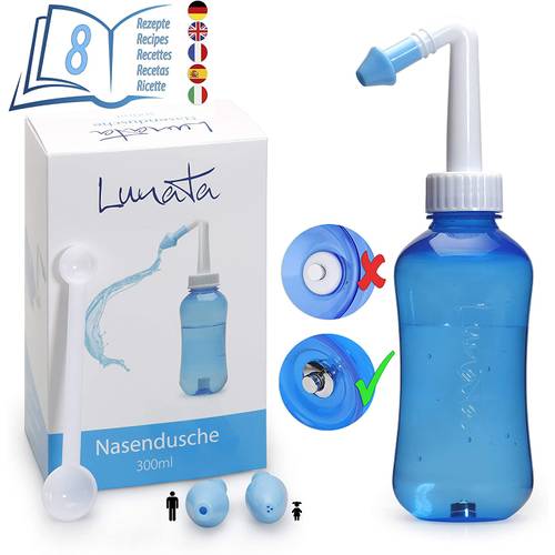Generell benötigen Sie für den Neti Pot kein Zubehör – außer eine Kochsalzlösung. Viele Produkte kommen im Set inkl. Nasenspülung – meist ein Nasenspülsalz. Das Salz aus dem Beutel wird zuhause mit abgekochtem Wasser gemischt (z.B. Emser Nasenspülsalz). Diese Salz-Beutel sind praktisch, denn sie sind bereits vorportioniert, aber nicht zwingend nötig. Die Inhalte von Salzlösungen mit den Salz-Beuteln unterscheiden sich kaum von einer hausgemachten Salzlösung – so können Sie eine Nasenspülung aus Salzwasser auch schnell selbst zubereiten. Praktisch ist es, wenn sich am Nasendusche Behälter eine Skala befindet. Viele Produkte enthalten einen Dosierlöffel als Zubehör, der das Abmessen und Einfüllen von Salz zusätzlich erleichtert. Aus diesem Grund ist es auch bei einer Nasendusche günstig, wenn sie einen Beipackzettel mit Informationen zur Anwendung enthält.