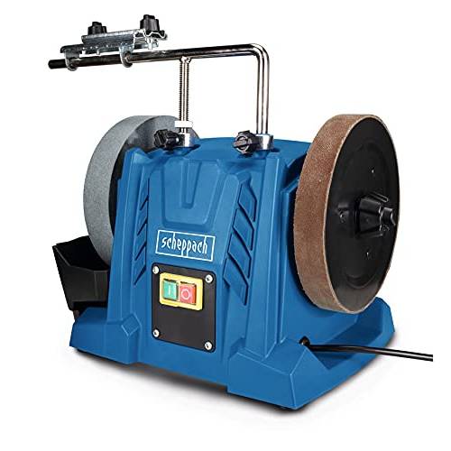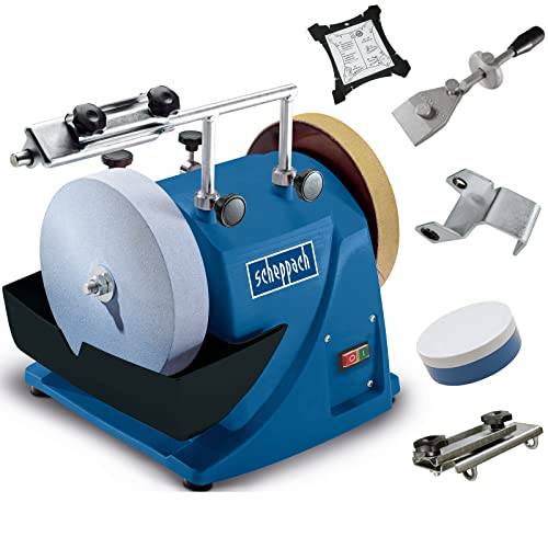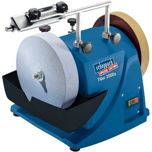 Nassschärfmaschinen als Schärfsysteme lassen sich in zwei Kategorien unterteilen: Modelle mit zwei Schleifsteinen und Modelle mit einem Schleifstein und einer Abziehscheibe aus Leder.