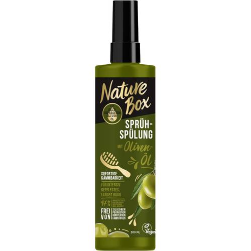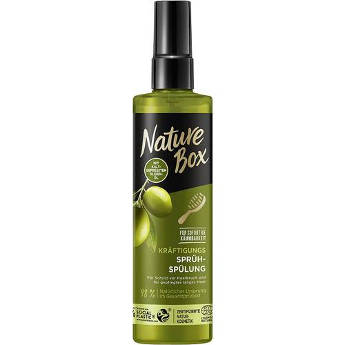Die Marke Nature-Box stellt nicht nur Conditioner in herkömmlicher Form her. Nature-Box bietet daneben auch Sprüh-Spülungen an, wie beispielsweise die Nature-Box-Sprüh-Spülung Granatapfel oder auch die Sprüh-Spülung Olivenöl von Nature-Box, welche besonders beliebt sind. Bei geschädigtem Haar können Sie eine Reparatur-Sprüh-Spülung von Nature-Box verwenden, um das Haar zu pflegen und zu nähren.