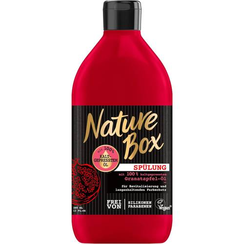 » Mehr InformationenIn der Regel enthalten die Nature-Box-Spülungen aus Online-Tests 385 ml. Das ist mehr Inhalt als bei einigen Spülungen anderer Marken. Die Spülungen von Nature-Box gibt es jedoch häufig auch in Packs zu kaufen.