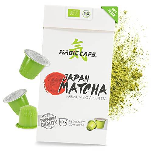 Matcha-Tee ist eine beliebte grüne Tee-Sorte aus Japan, die mittlerweile auch hierzulande gern getrunken wird. Matcha-Tee soll durch seinen Koffeingehalt die Konzentration und Wachheit fördern. Zubereitet schmeckt er mit aufgeschäumter Milch besonders gut. Traditionell wird Matcha-Tee mit einem kleinen Bambus-Besen angerührt. Praktisch und einfach zu dosieren sind Matcha-Teekapseln für Ihre Nespresso-Kaffeemaschine, die Ihnen das Anrühren des grünen Teepulvers ersparen.