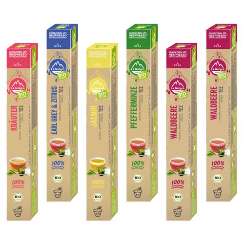 Sie können Nespresso-Tee-Kapseln auch im Set kaufen. Die Sets sind nicht nur zum Probieren neuer Sorten praktisch. Sie finden auch tolle Zusammenstellungen verschiedener grüner und schwarzer Tees. Beliebt sind auch Sets mit verschiedenen Kräuter- und Früchtetees.