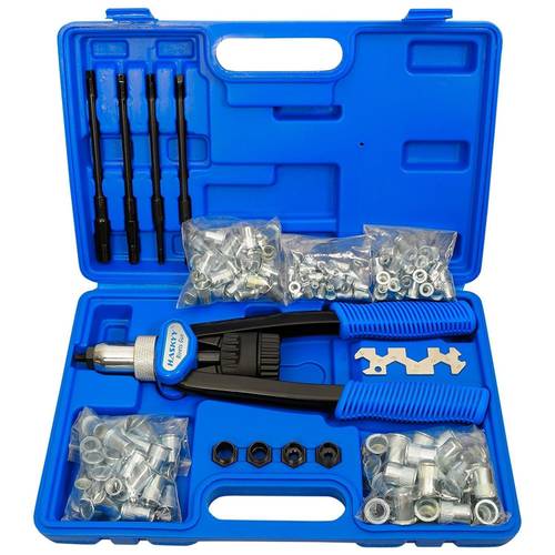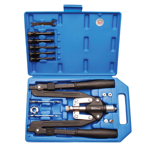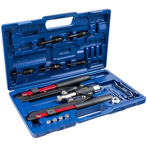 Wenn Sie Kunststoff oder dünnes Aluminium vernieten, verwenden sie im besten Fall eine einhändige Nietzange. Sie schont das Blech durch einen geringeren Anpressdruck. Das gleiche gilt für die Normgrößen M3 bis M5. Die zweihändige Nietmaschine mit Gewinde kommt bei den Nietmutternzangen M8 bis M12 und dickem Stahlblech zum Einsatz. Bei M6 Nietmuttern können Sie abwägen. M6 Edelstahlmuttern lassen sich leichter mit der Zweihandzange nieten. Mit M6 Stahl und Aluminium kommt demgegenüber auch die Einhandzange zurecht. Sie setzen des Öfteren Blindnieten? Dann sollte die Wahl auf eine Nietzange mit Doppelfunktion fallen.