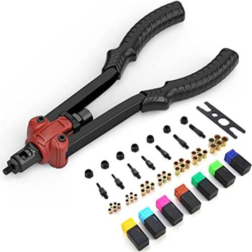 Die Länge der Griffe beeinflusst entscheidend, wie stark Sie beim Vernieten zudrücken müssen. Je länger der Griff ist, desto leichter können Sie Nietmuttern einfassen. Für die Normgrößen M8 bis M10 ist eine Grifflänge von mindestens 30 cm geeignet. Auch M12 Muttern sollten Sie damit problemlos setzen können. Falls Ihnen die Kraft dafür fehlt, lohnen sich extra lange Griffe über 40 cm.