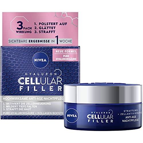 Platz 5 | Nivea Hyaluron Cellular Filler Anti-Age Nachtpflege Creme | ca. 14 € | Gesicht Nachtcreme | anspruchsvolle Haut | ![]() ![]() |