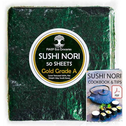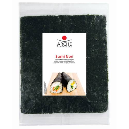 Die hauchdünnen Nori-Blätter, die dann verkauft werden, sind meist in quadratische Stücke geschnitten und leicht geröstet. Sie werden auch als Yaki Nori bezeichnet und eignen sich ideal zum Zubereiten von Sushi, egal ob selbstrollend oder im Sushi-Maker.