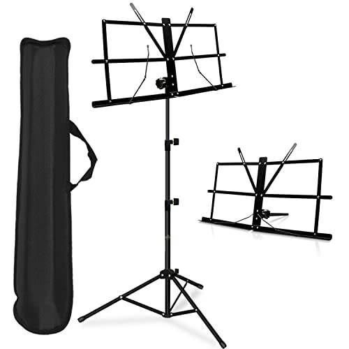 Ein Notenständer ist für viele Musiker laut gängigen Tests klappbarer Notenständer im Internet unverzichtbar. Auf dem Ständer können Musiknoten, die Musiker zum Musizieren benötigen, abgelegt werden.