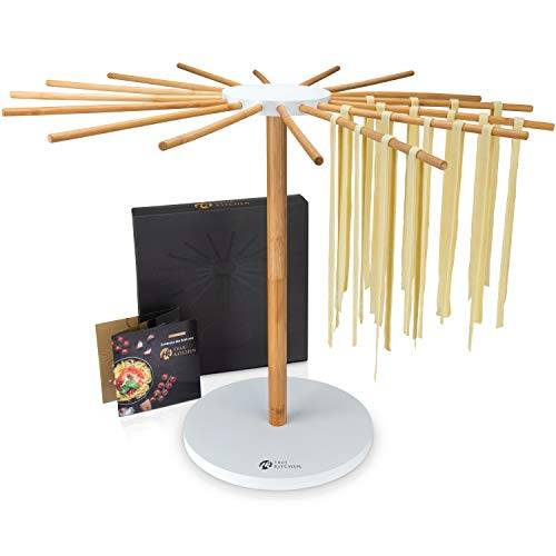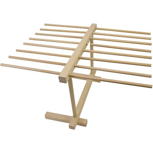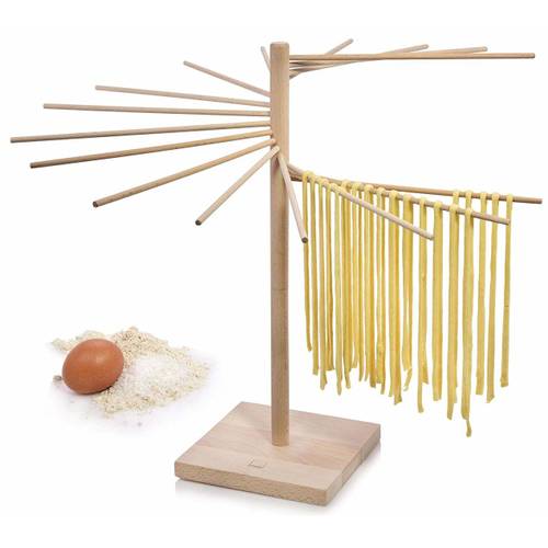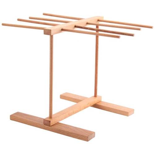 Wer es klassisch mag und nicht mehr als drei Portionen Nudeln zu trocknen hat, der sollte zu einem „Wäscheständer“-Nudeltrockner aus Holz oder zu einem Nudeltrockner aus Bambus greifen. Das große Plus dieses Modells ist, dass die Nudeln alle auf einer Höhe hängen und Sie keine unterschiedlich langen Tagliatelle oder Spaghetti machen müssen.
