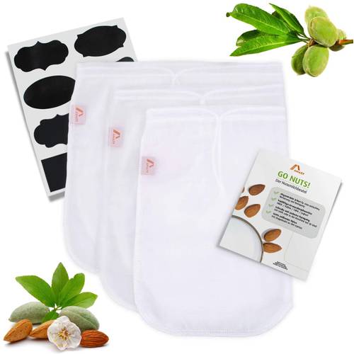 Übrigens: In Nussmilchbeuteln mit abgerundeten Ecken setzen sich weniger Reste fest. Daher empfehlen wir, solch einen Nussmilchbeutel zu kaufen.