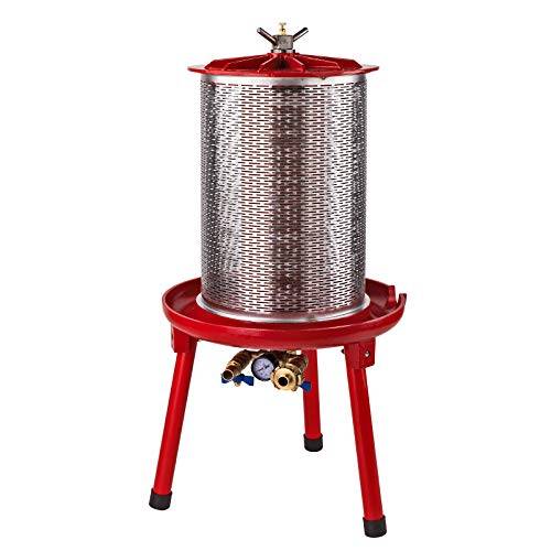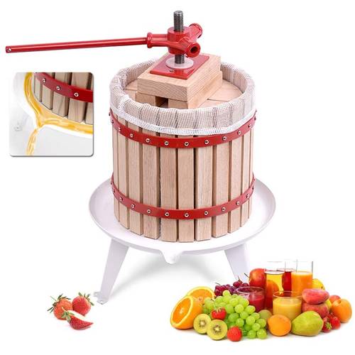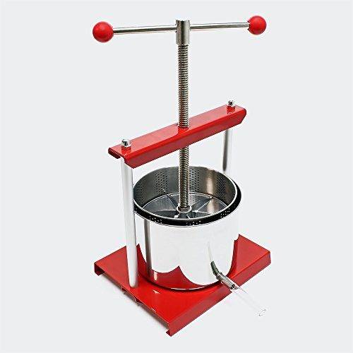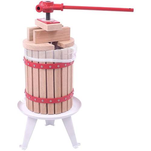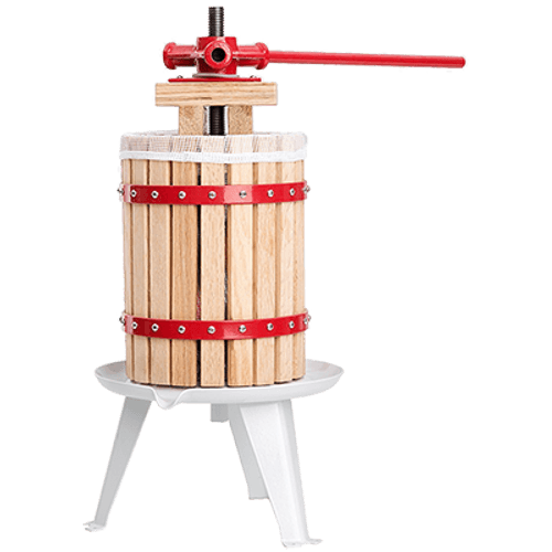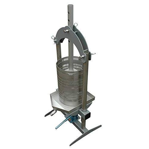 Eine manuelle oder mechanische Obstpresse kann aus Holz oder Edelstahl bestehen.