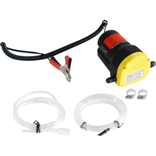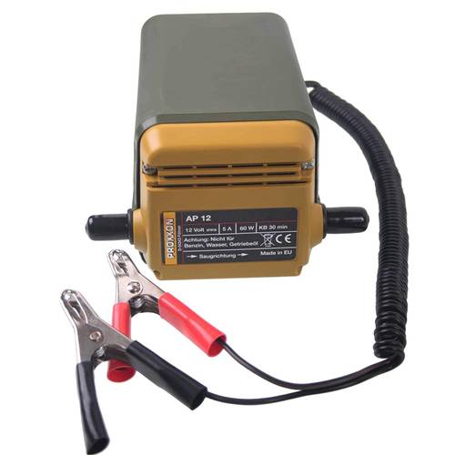 Handelsüblich und am weitesten verbreitet sind 12-V-Ölabsaugpumpen. Diese werden per Gleichstrom aus einer Autobatterie versorgt. Dies geschieht, indem Sie die mitgelieferten Klemmen an der Autobatterie anschließen.