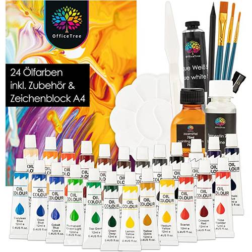 Ölfarb-Sets werden in unzähligen Größen und Ausführungen angeboten. Zusätzlich zu den Farbtuben können sie auch Pinsel, Paletten, Malmittel und andere nützliche Utensilien beinhalten.