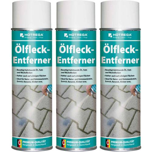 Besonders gut beseitigt man Ölflecken, wenn der Reiniger direkt auf einen frischen Ölfleck gegeben wird. Je älter der Fleck, desto schwerer wird das Entfernen.