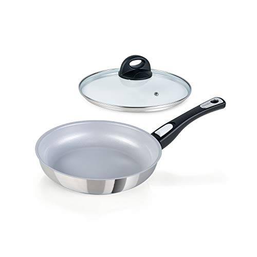 Mit ofenfesten Pfannen können Sie Ihre Gerichte direkt nach dem Braten in den Ofen schieben, um sie beispielsweise warmzuhalten oder mit Käse zu überbacken. Eine Edelstahlpfanne ist in jedem Fall ofenfest. Aluminium-Pfannen dagegen nicht immer. Jedoch besitzen einige Aluminium-Pfannen für den Ofen geeignete Griffe und die richtige Beschichtung, sodass auch diese Pfannen bis zu einer bestimmten Temperatur ofenfest sind.