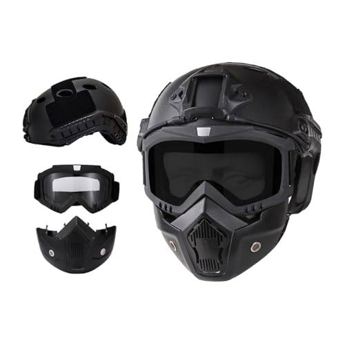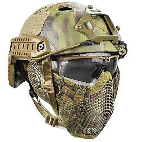 Diese auch als Full Coverage, Vollschutzmaske oder Vollgesichtsschutzmaske bekannte Art der Paintballmaske funktioniert wie ein Schutzhelm. Obgleich es weh tut, kann ein Paintball-Treffer am Hinterkopf keine bleibenden Schäden anrichten. Ein Brummschädel oder eine nervige Druckstelle können infolge des Aufpralls aber durchaus wahrscheinliche Folgen sein. Durch einen Helm lässt sich das vermeiden, wird aber für gewöhnlich mit höherem Gewicht erkauft. Wenn Sie unerfahren oder Gelegenheitsspieler sind, eignet sich eine solche Gotcha-Maske eher für Sie, weil das Risiko, getroffen zu werden, größer ist als bei einem geübten Gotcha-Spieler.