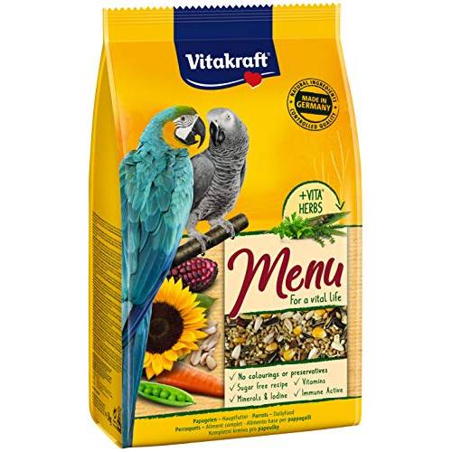 Wenn Sie Papageienfutter kaufen, achten Sie immer darauf, dass Vitamine, Mineralien, Proteine, Fette und Kohlenhydrate enthalten sind.