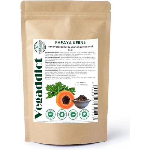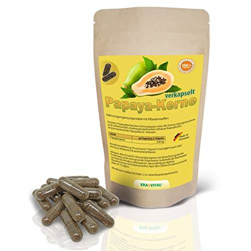 Modell | Erasvital Papayakerne | Natürlich lang leben Papayakerne-Pulver | Superfoods 24 Papayakerne | Erasvital Papaya-Kerne verkapselt | Vegaddict Papayakerne |