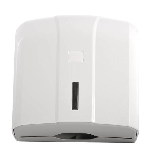 Der Papierhandtuchspender fasst Einmaltücher mit C-Falz, Z-Falz, Multifold oder Interfold-Zickzack-Faltung z. B. der Marken Georgia-Pacific (GP), Kimberly Clark Kleenex, Scott, Original Joe oder Boardwalk.