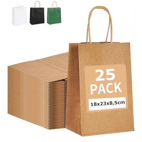 Platz 1 | Bescost Kraftpapiertüten mit Henkel | ca. 14 € | 2,5 Liter | 21 x 15 x 8 cm | ![]() ![]() | |