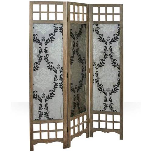 Design-Paravents | Des Weiteren sind Design-Raumteiler im Handel erhältlich. So gibt es Paravents im Landhausstil oder Vintage-Paravents. Letztere sind häufig so bearbeitet, dass deren Oberfläche durch einen Kalkanstrich künstliche Gebrauchsspuren erhält. Der Kalkanstrich von Vintage-Paravents betont die natürliche Maserung des Holzes und dessen Struktur. Bei dieser White-Wash-Technik wird verdünnte weiße Farbe mit einem Schwamm oder Lappen auf die angeraute Oberfläche des Paravents aufgetragen. Man spricht hier auch vom sogenannten Shabby Chic. Darüber hinaus gibt es unter anderem Design-Paravents aus gebunden Holzruten oder Bambus. |