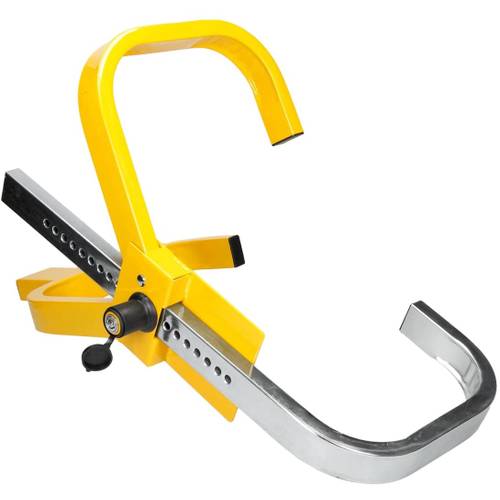 Mit einem Schloss mit einem oder 2 Schlüssel können Sie die Parkkralle recht schnell an den Reifen anlegen.