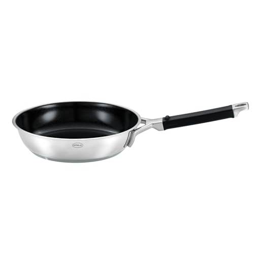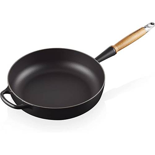 Einen guten Kompromiss bieten abnehmbare Kunststoff-Griffe, wie sie beispielsweise bei den 28-cm-Pfannen von Berndes und Woll zu finden sind: Sie können bequem mit einem Handgriff abgenommen werden, bevor die Pfanne in den Ofen gestellt wird. Ebenso sind hier die Pfannen von Schulte Ufer zu nennen.