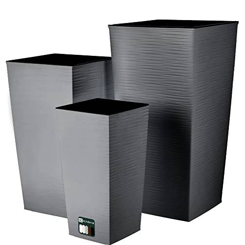 Je nach Verwendungszweck können unterschiedlich große Pflanzkübel sinnvoll sein. Konische Kübel sind ideal für die elegante Präsentation von Pflanzen, allerdings verfügen Sie meist nur über ein kleines maximales Volumen für die Befüllung mit Blumenerde.