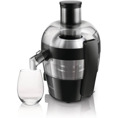 Der Philips-Entsafter HR1832/00 aus der Viva Collection verfügt über einen Saftbehälter mit einer Kapazität von 0,5 Litern. Der Tresterbehälter fasst etwa 1 Liter. Dadurch ist der Entsafter platzsparend und besonders für kleinere Haushalte geeignet.