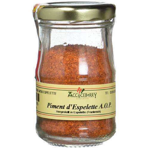 Da dieser Piment d’Espelette aus dem Baskenland stammt, wie wir herausfinden, ist es wenig erstaunlich, dass er in Rezepten wie Baskisches Hühnchen u. Ä. benutzt wird.