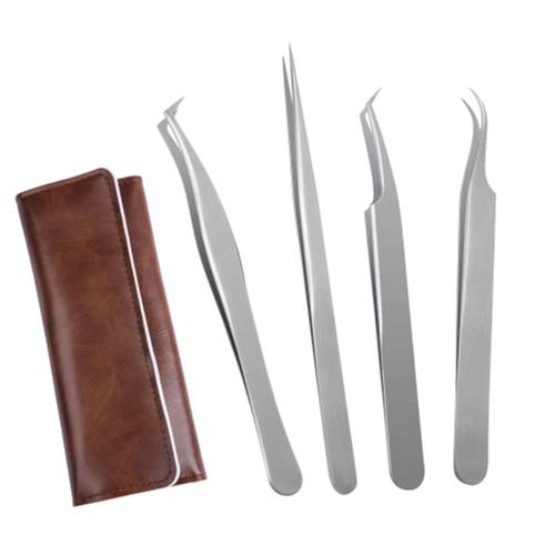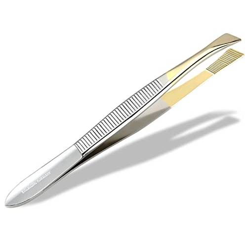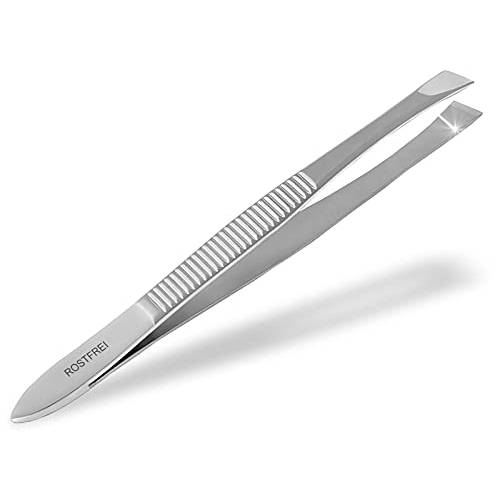 Pinzetten gibt es in verschiedenen Formen, schräge Modelle lassen sich gut bei kosmetischen Anwendungen wie dem Zupfen der Augenbrauen verwenden.