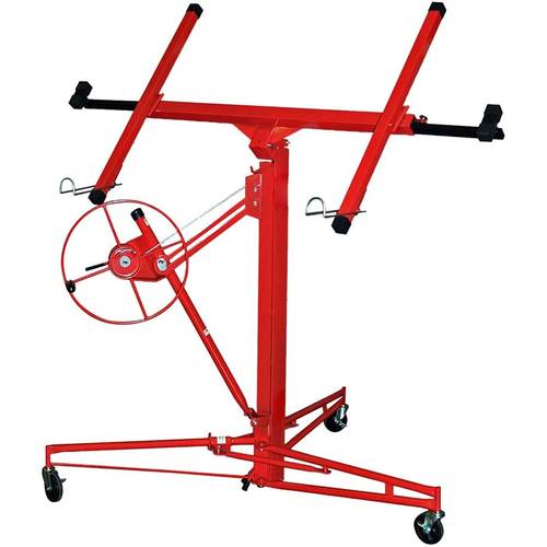 Mit einem Plattenheber können Sie neben Rigips auch Gipsbetonplatten und Holzpaneele auf Ihre Arbeitshöhe transportieren. Laut Online-Tests von Plattenhebern für den Trockenbau ist die Einmannnutzung des Arbeitsgeräts gut möglich. Dank des einfachen, aber effektiven Kurbelmechanismus können Sie die Platten bis auf über drei Meter Höhe kurbeln, um sie am vorgesehenen Ort anzubringen.
