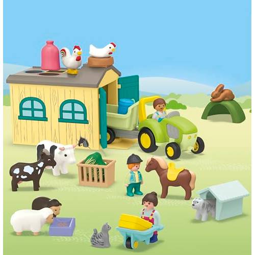 Playmobil bietet eine Vielzahl von Bauernhof-Sets, die sich in Größe, Ausstattung und Funktionalität unterscheiden. Für kleine Kinder gibt es den Bauernhof der Playmobil 123-Serie, die speziell für die Altersgruppe ab 1,5 Jahren entwickelt wurde. Ihre Sets, wie der Playmobil 123 Bauernhof, sind besonders robust, enthalten keine verschluckbaren Kleinteile und haben abgerundete Formen, sodass sie sich perfekt für erste Spielerfahrungen eignen.