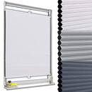Freihängende Plissees eignen sich nur für normale, senkrechte Fenster. Da die untere Schiene nicht am Fenster fixiert ist, schwingt diese frei im Raum.