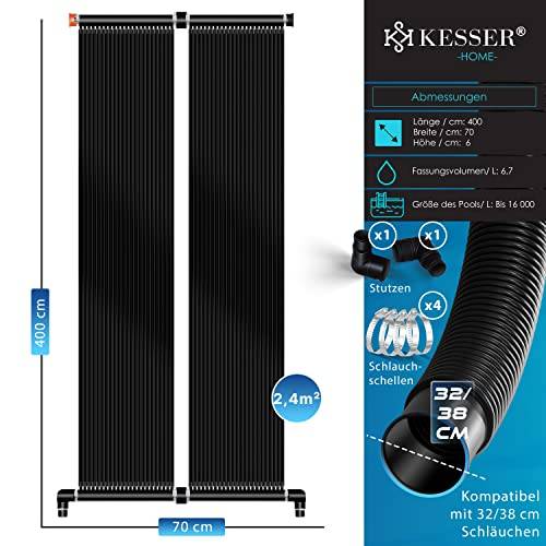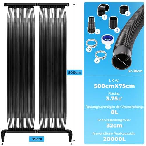 Übrigens: Mit einem Solarabsorber-Set werden üblicherweise mehrere Komponenten zusammengefügt, zum Beispiel Solarabsorber-Matten oder Paneele auf Dächern. Dazu gehören auch Schläuche und Verbindungselemente.