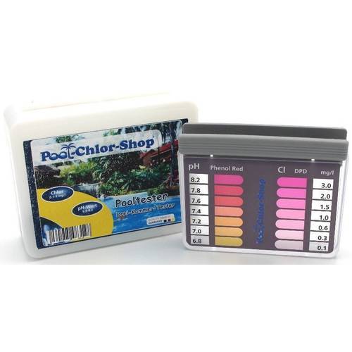 Die einfachen Pooltester von Bayrol, Duraol und anderen Herstellern bieten nur pH-Wert und freies Chlor als Messwerte an. Mit größeren Teststreifen und den digitalen Pooltestern lassen sich dagegen weitere Werte erfassen, die bei einem kleinen Becken kaum von Bedeutung sind.