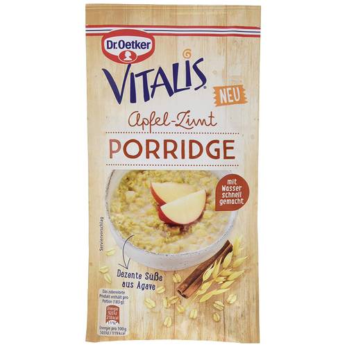 Platz 4 | Dr. Oetker Vitalis Porridge Apfel-Zimt | ca. 14 € | 580 g 25,84 € pro kg | 119 kcal | ![]() ![]() | |