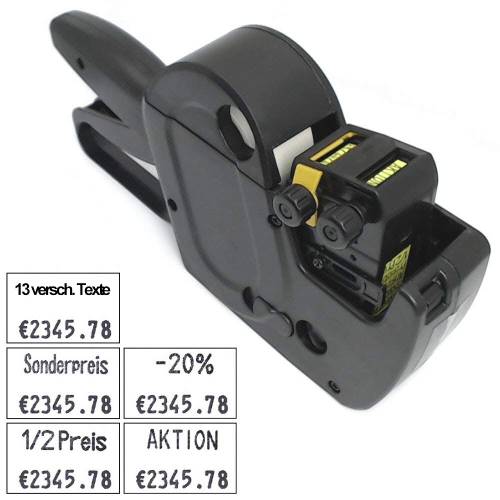 Spezielle Preisauszeichner mit Buchstaben-Funktion ermöglichen neben Preisen auch Textkennzeichnungen auf Etiketten.