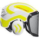 Der Protos-Helm kann mit diversem Zubehör ergänzt werden, die dem Träger zusätzlichen Schutz und Komfort bieten. Ein wichtiger Bestandteil ist der Protos-Gehörschutz, der vor Lärmbelastung durch Motorsägen und andere Geräte schützt und somit das Risiko von Gehörschäden reduziert.