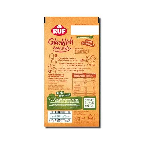 Die Zutatenliste dieses Ruf-Puddingpulver „Karamell“ ist erfreulich kurz: Stärke, 5 % Karamellpulver, Milch-Aroma, Speisesalz.