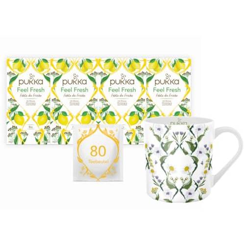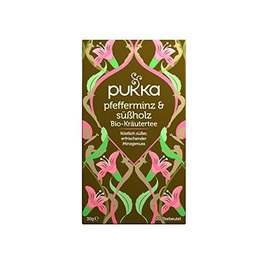 Die Sorte Pukka Drei Süßholz enthält zum Beispiel drei unterschiedliche Süßholzarten aus drei verschiedenen Ländern und schmeckt würzig-süß. Frauen greifen gern zum Pukka-Tee Frauenglück, der mit ausgewählten Bio-Kräutern für die weibliche Balance sorgt. Herrlich minzig duftet Pukka-Tee Pfefferminz & Süßholz, der sich perfekt für jeden Tag eignet. Ausgefallenere Teevariationen, wie Pukka Wildapfel & Zimt oder Pukka Goldene Kurkuma, sorgen für Abwechslung in der Teetasse. Wenn Sie möchten, verschenken Sie doch eine Auswahl verschiedener Tees in einer praktischen Geschenkbox mit Pukka-Tee.