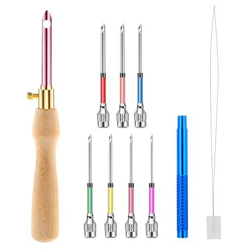 Die Riddur Punch-Needle liegt als Set in einer Anzahl von 10 Nadelsets vor und eignet sich vor allem für Anfänger. Sie sind in der Größe verstellbar und können ohne einen Griff verwendet werden. Ein weiterer Pluspunkt ist, dass sie gut in der Hand liegen. Wir können das Set aus Punch-Needles mit umfangreichem Zubehör mit ausführlicher Anleitung für Anfänger und als Geschenk empfehlen.