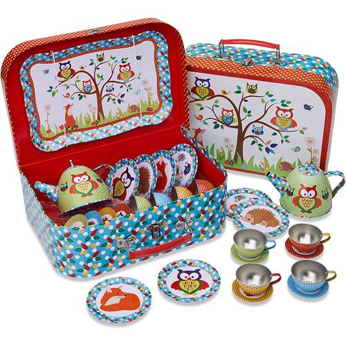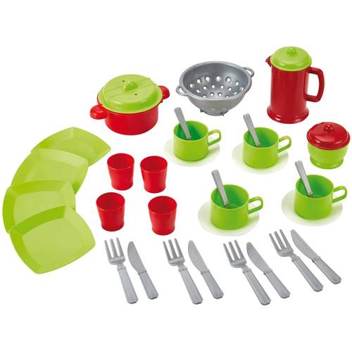Ein Teeservice ist meist besonders filigran gestaltet und kommt häufig in hübschen Designs daher. Ideal für nachmittägliche Teepartys mit den Lieblingspuppen oder Freunden. Es umfasst in der Regel kleine Tassen, Kännchen, Untertassen und manchmal auch eine Zuckerdose oder ein Milchkännchen. Für kleine Gastgeberinnen und Gastgeber ist es eine Einladung zu fantasievollen Plauderstunden.