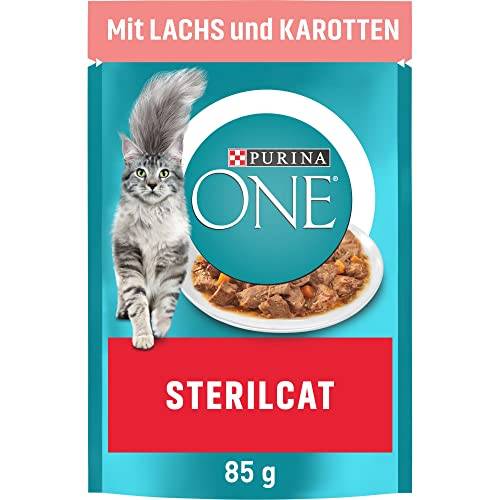 Hier sehen wir eine Packung Purina One Katzenfutter, das offenbar speziell für sterilisierte Katzen mit ihrem niedrigeren Energieverbrauch gedacht ist.