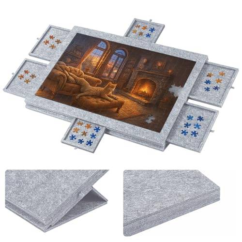 Das Lavievert Puzzlebrett beeindruckt mit herausragender Qualität. Die rutschfeste Abdeckung stabilisiert die Puzzleteile, auch wenn das Board geneigt ist. Leicht und beweglich, bietet es flexible Puzzlerlebnisse auf der Couch, im Bett oder am Tisch. Dank der unkomplizierten Aufbewahrung können Sie Puzzles speichern und später nahtlos weitermachen, ohne von vorn anzufangen.