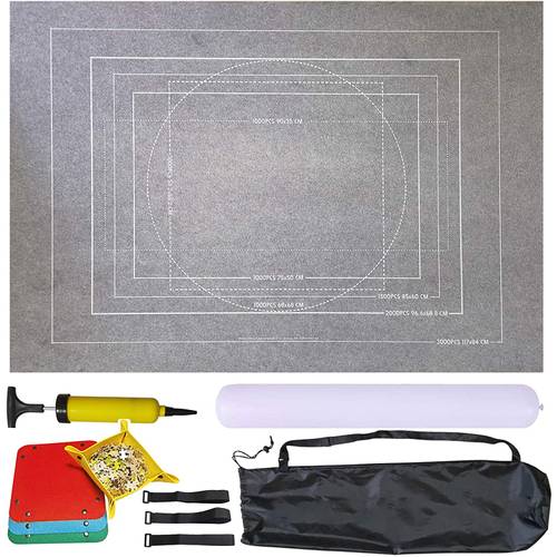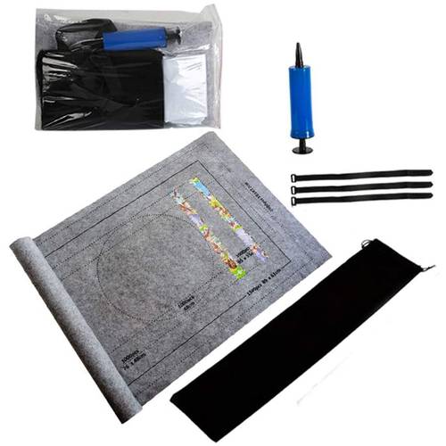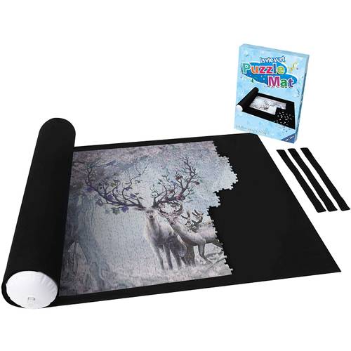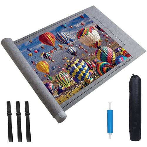 Die meisten Puzzlerollen bestehen aus einer Matte aus einem dünnen Filzstoff. Filz-Puzzlerollen bieten den Vorteil, dass die Puzzleteile durch die raue Oberfläche des Filzes nicht verrutschen können. Der Stoff sollte möglichst dünn sein, damit er gut rollbar ist. Die besten Puzzlerollen haben außerdem die Maße der gängigen Puzzles aufgezeichnet, sodass Sie einen Anhaltspunkt dafür haben, wie groß Ihr Puzzle am Ende sein wird.